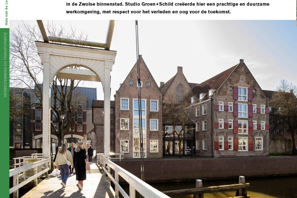 Heden en verleden perfect verweven. Dat is de titel van een publicatie in de Pi over het ontwerp voor Het Huis van de Leefomgeving in Zwolle. In opdracht van Het Oversticht ontwierp Studio Groen+Schild de bouwkundige verduurzaming en het interieur van dit rijksmonument.